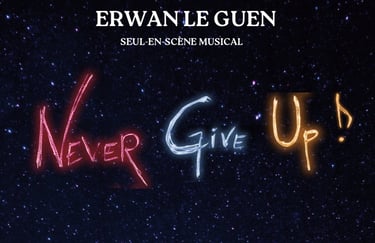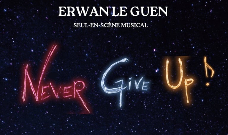 Spectacle mêlant stand-up, musique et théâtre, NEVER GIVE UP ! est le témoignage de vie d’un artiste trentenaire, rêveur et passionné. Violoncelliste, comédien, pianiste, auteur, chanteur ? Oui tout cela est possible à la fois. NEVER GIVE UP ! est une libération, une ode à notre enfant intérieur, un appel à l’émancipation.